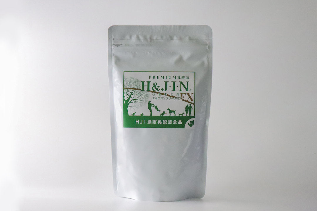 エイチジングリーンEXはH&J社独自の乳酸菌「HJ1乳酸菌」を1包に4000億個配合。全てが通常タイプの5倍以上の高配合バージョンです。